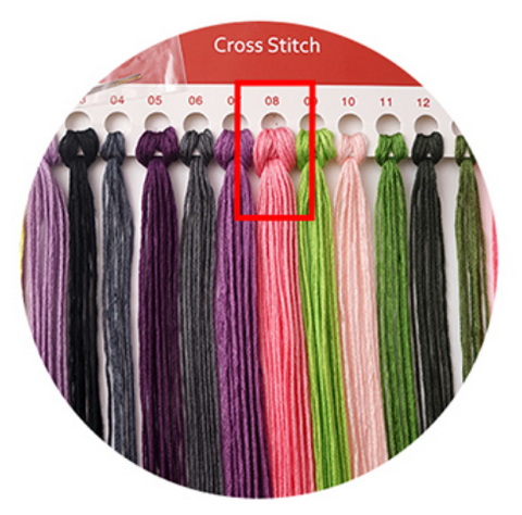 Il numero su ogni filo permette di fare riferimento alla legenda sulla tela o sulla guida cartacea per trovare la corrispondenza tra ogni simbolo, numero e colore di filo da ricamo.