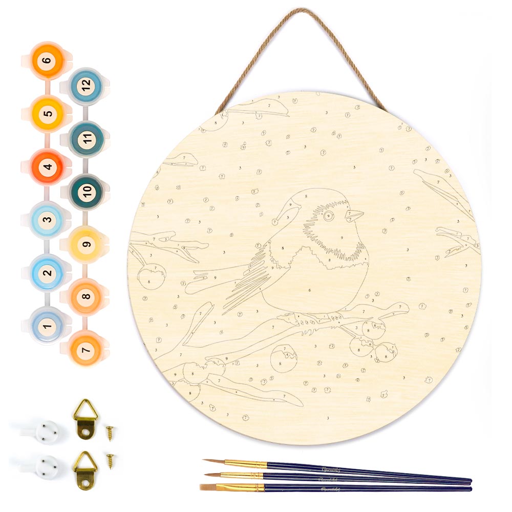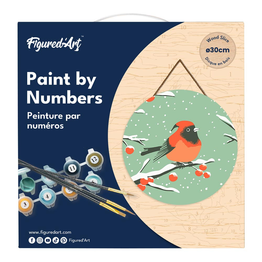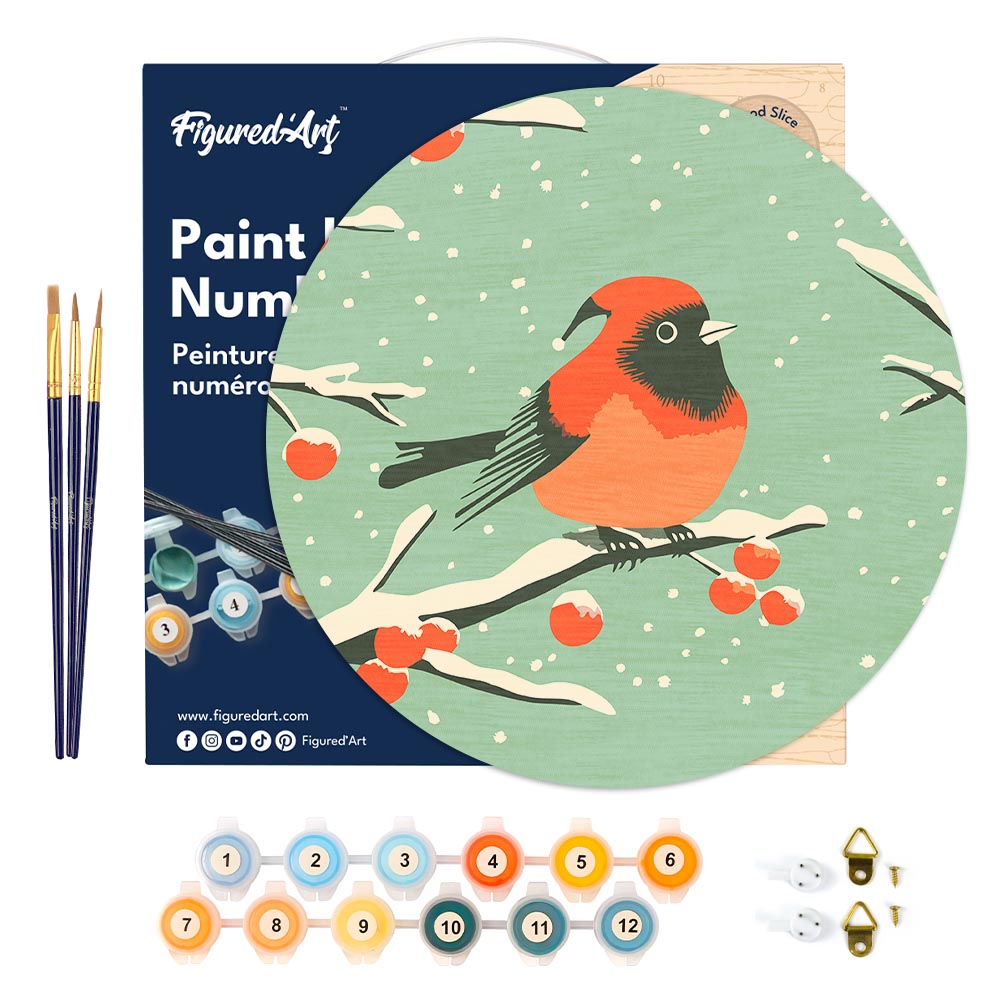 Dipingere con i Numeri su Disco di Legno - Cardinale invernale