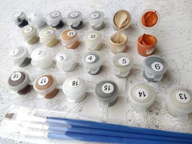 2) Riceverai un kit completo e pronto per l’uso con una tela divisa in zone cromatiche numerate, i flaconcini di colore numerati corrispondenti, pennelli per pittura ed una piccola immagine di anteprima per guidarvi verso il risultato finale. Che il viaggio abbia inizio!