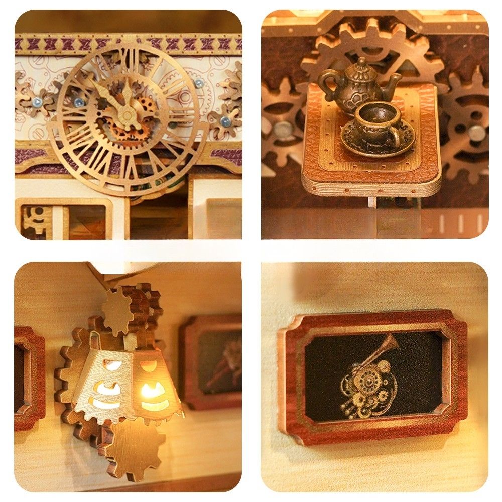 Questo kit DIY Book Nook include tutto il materiale necessario per iniziare e creare il tuo mondo in miniatura: