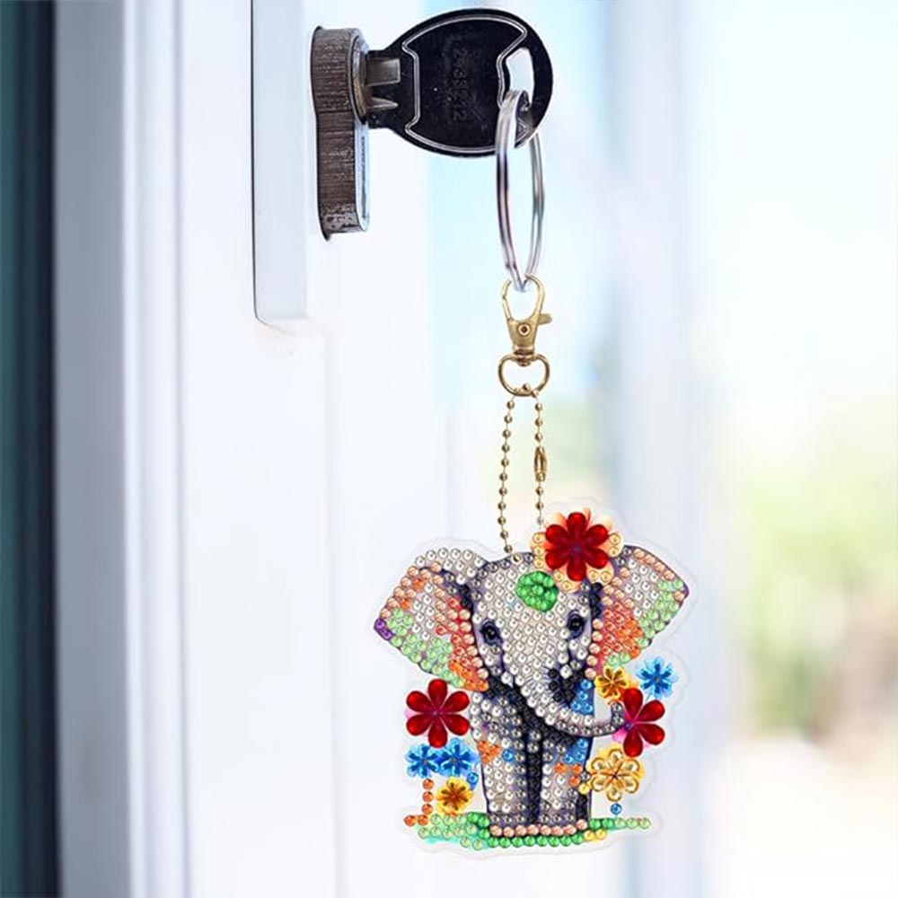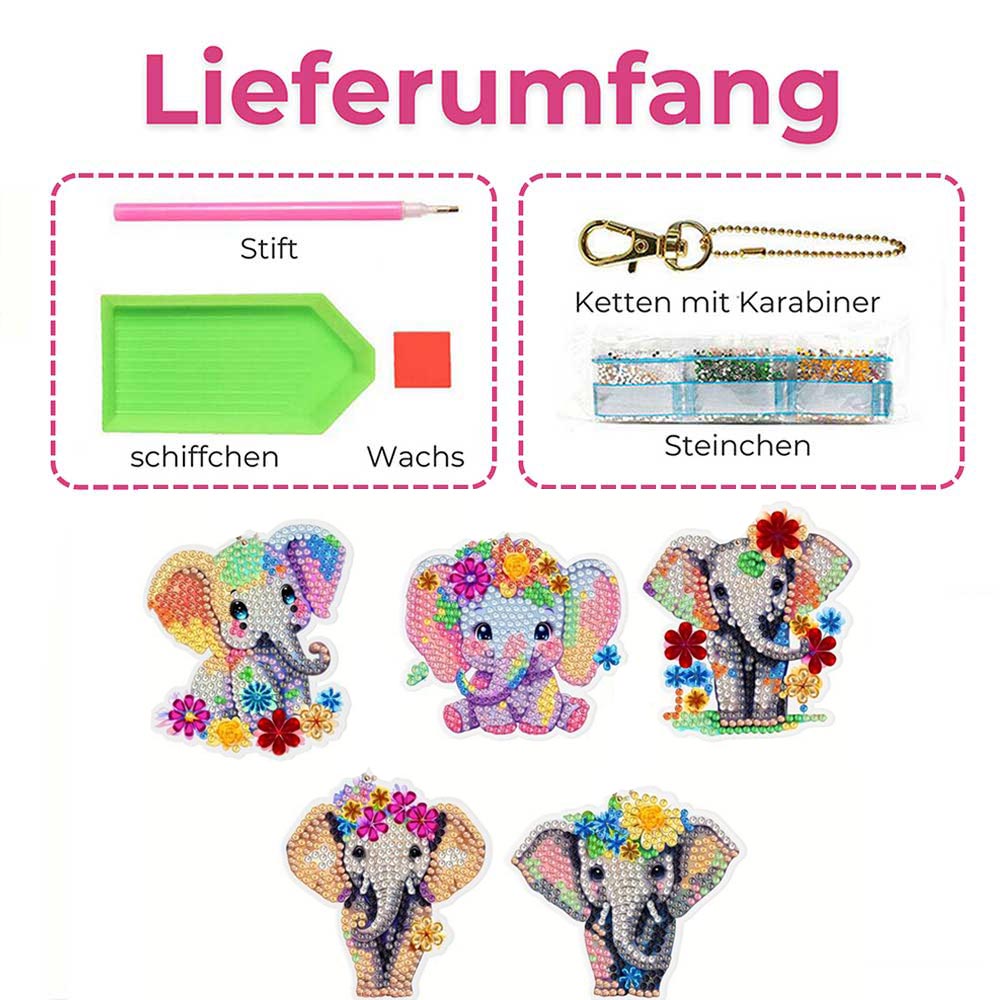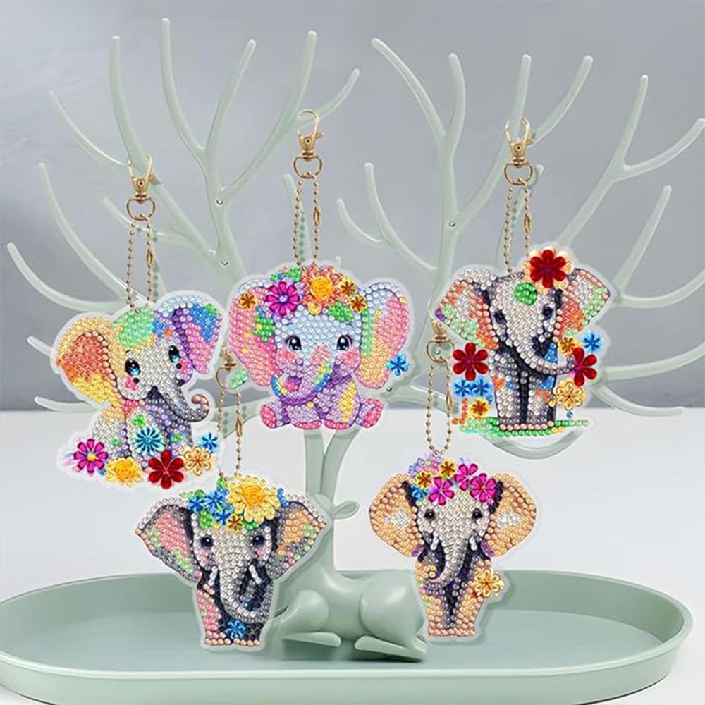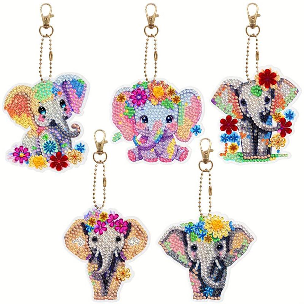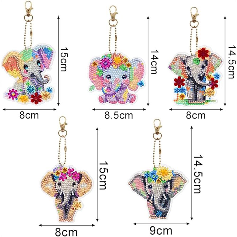 Portachiavi Diamond Painting 5D con Elefanti 5 Pezzi