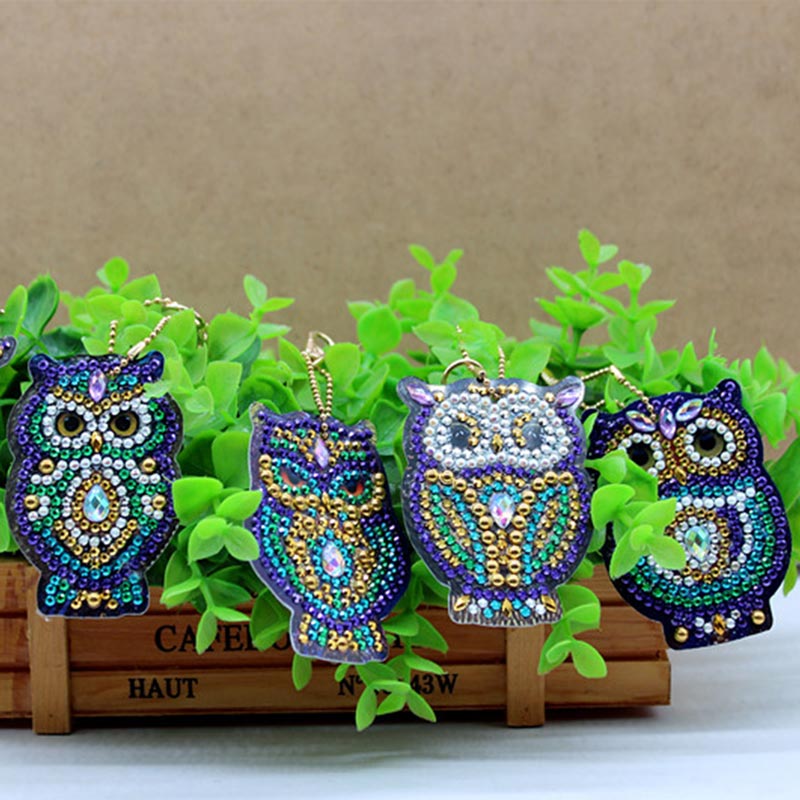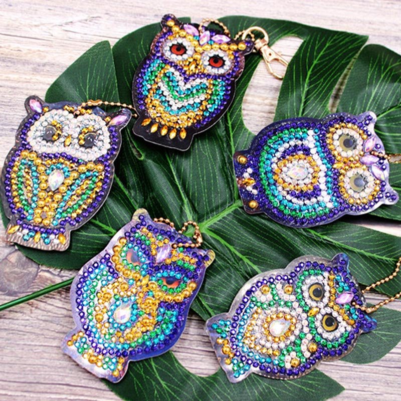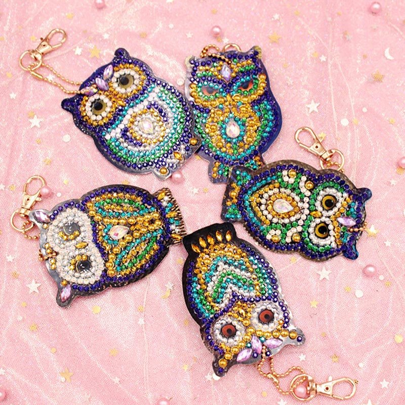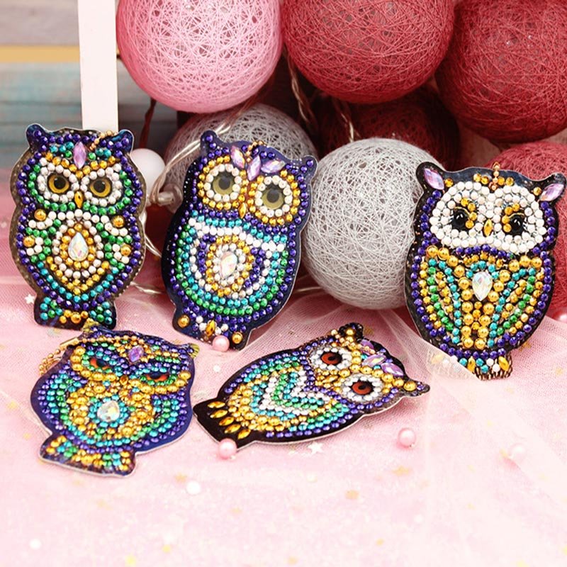 Portachiavi Diamond Painting 5D Gufi Set di 5 Pezzi