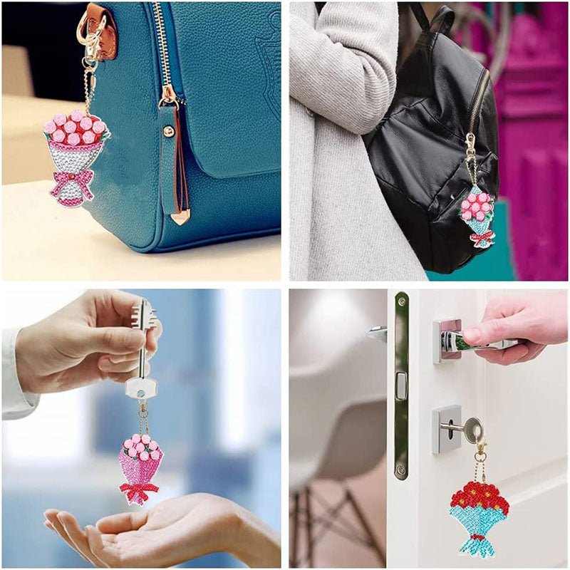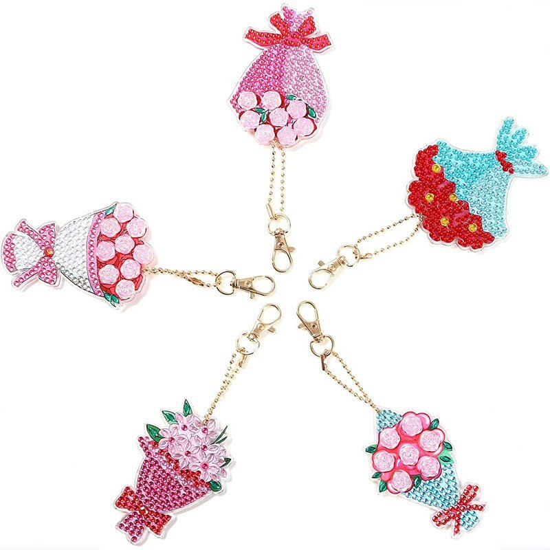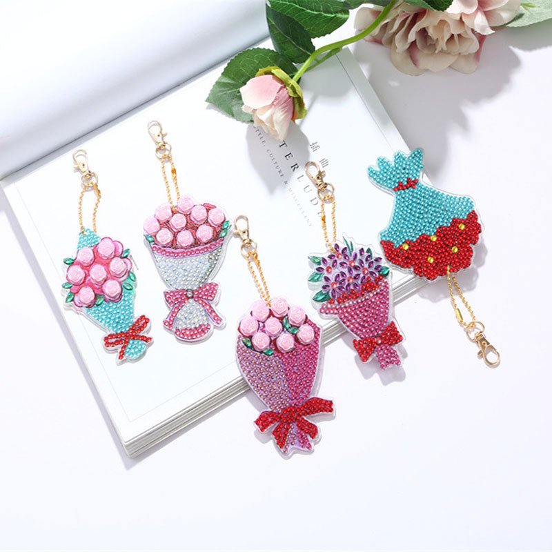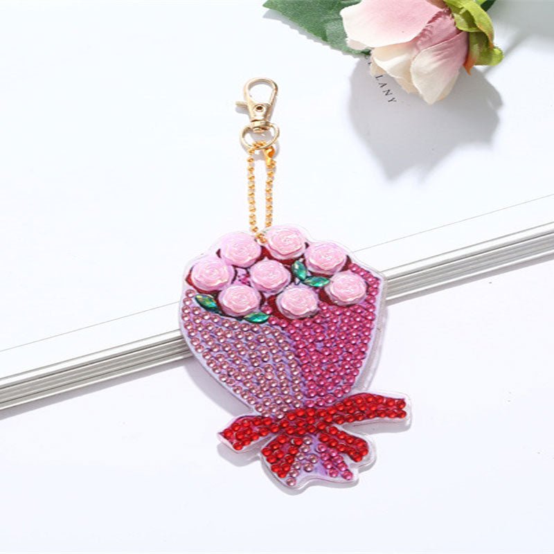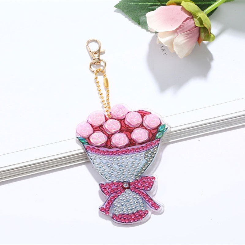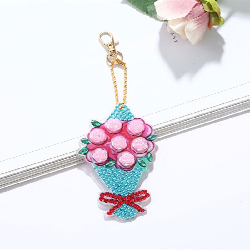 Portachiavi Diamond Painting 5D Mazzo di Fiori