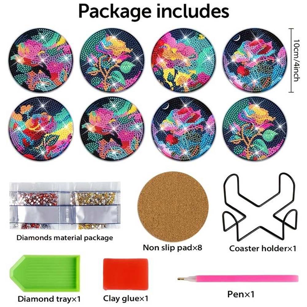 • Il pacchetto comprende : 8x Vassoi, 1x Supporto, Strass, Strumenti