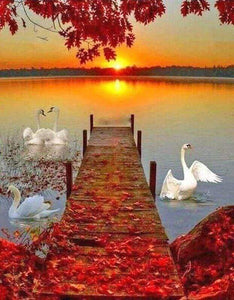 Diamond Painting - Piattaforma In Legno E Tramonto