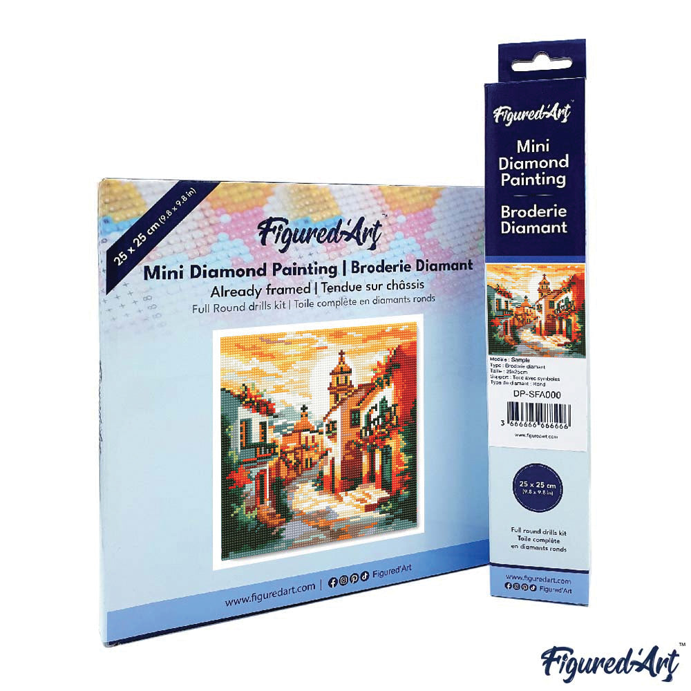 Modello: Mini Diamond Painting 25x25cm Chiesa del villaggio al tramonto