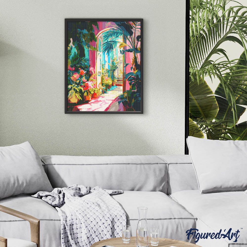 4) Una volta che il tuo capolavoro di Diamond Painting è stato completato, premi leggermente la composizione di diamantini con la mano o una superficie piatta e rigida, come la copertina di un libro, per assicurarti che tutti aderiscano alla tela.