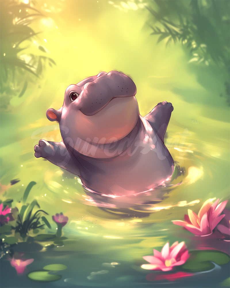 Modello: Diamond Painting - Ippopotamo che Nuota