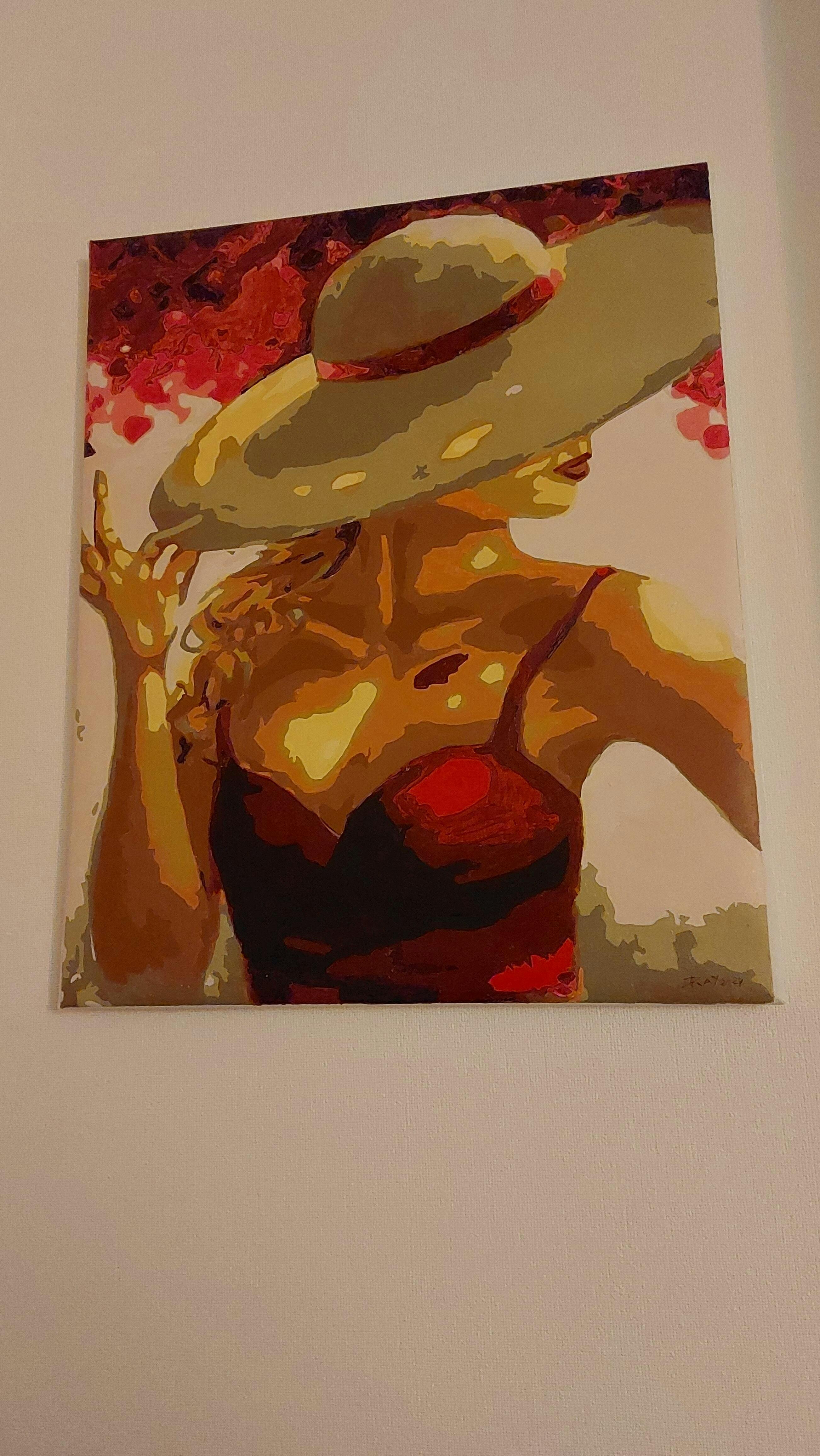 Modello: Dipingere con i numeri - Donna con cappello e vestito rosso