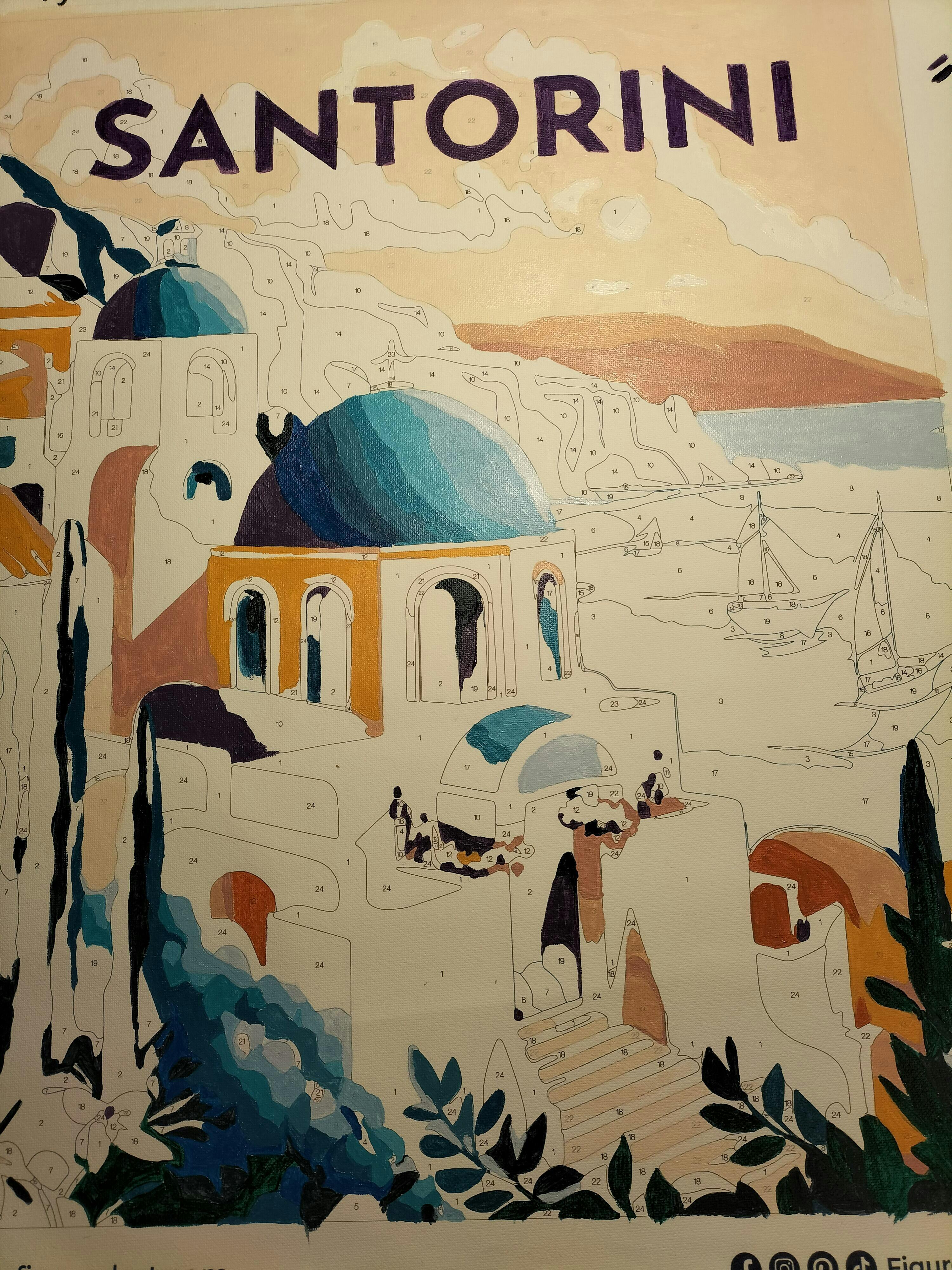 Modello: Dipingere con i numeri - Poster di viaggio a Santorini