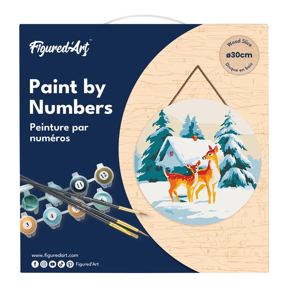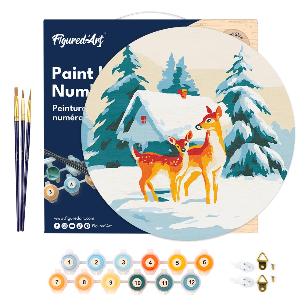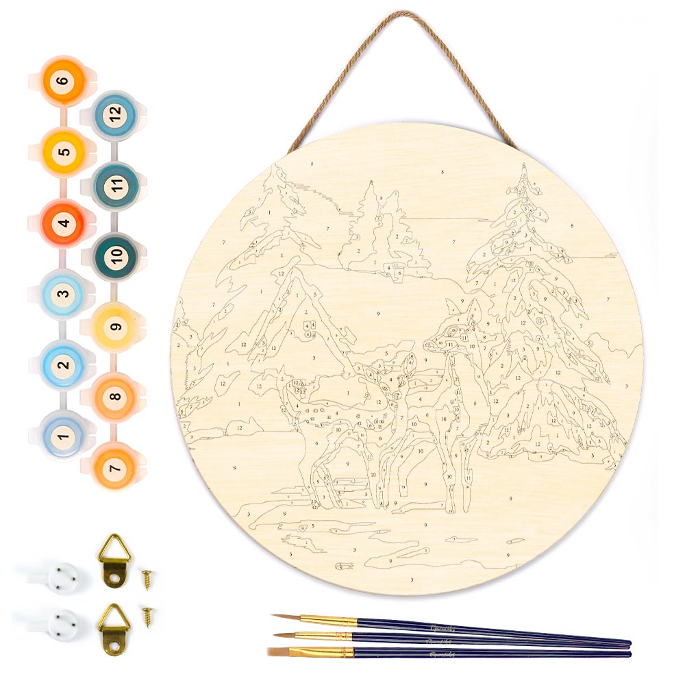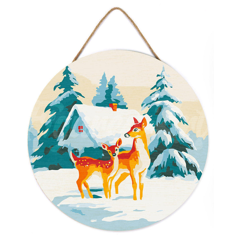 Dipingere con i Numeri su Disco di Legno - Cervo e baita
