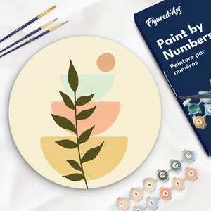 Dipingere con i Numeri su Disco di Legno - Paesaggio e pianta