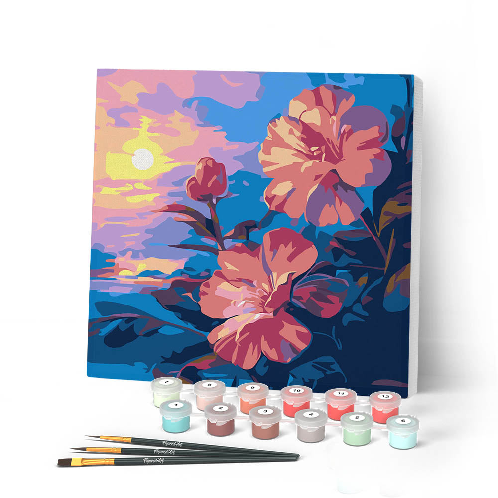 Mini Kit da Dipingere con i Numeri 20x20cm con cornice - Ibisco al tramonto