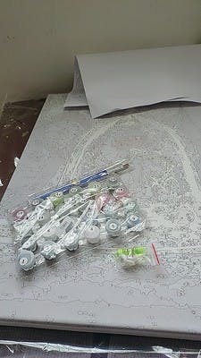 Kit completo di tela da Dipingere con i Numeri arrotolata senza pieghe.