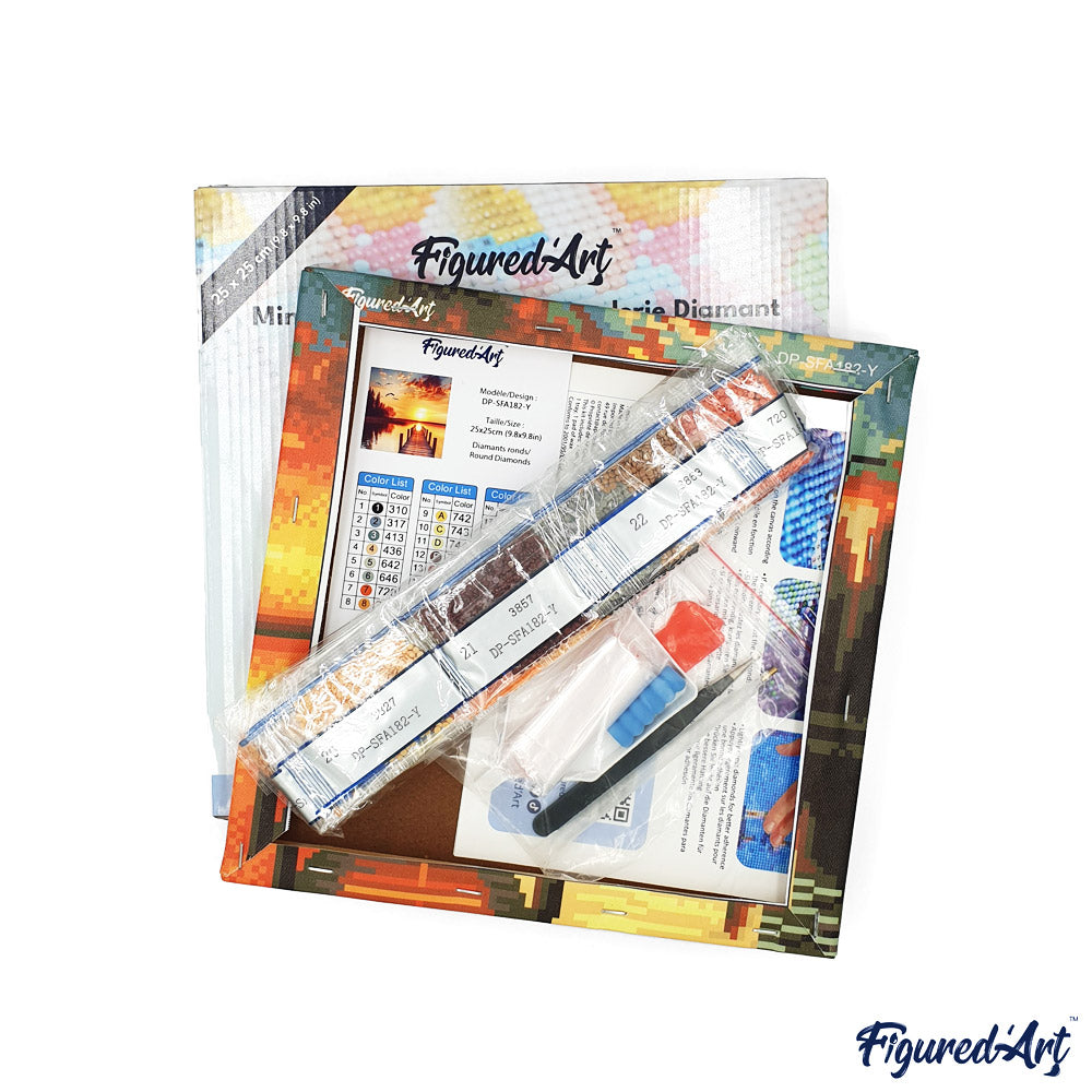 Questo magnifico mini kit di Diamond Painting con diamanti rotondi e tela 25x25cm contiene tutto il necessario per realizzare la vostra opera d’arte: