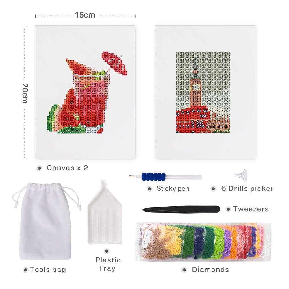 Mini Set Diamond Painting 15x20cm (2 pezzi) - Bevande e Autobus a Due Piani
