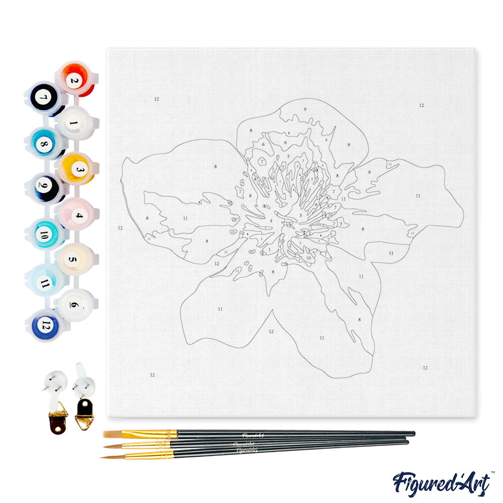 Mini Kit da Dipingere con i Numeri 20x20cm con cornice Rosa canina