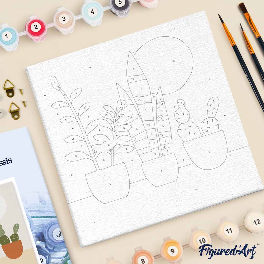 Mini Kit da Dipingere con i Numeri 20x20cm con cornice Succulente
