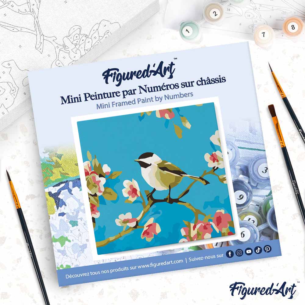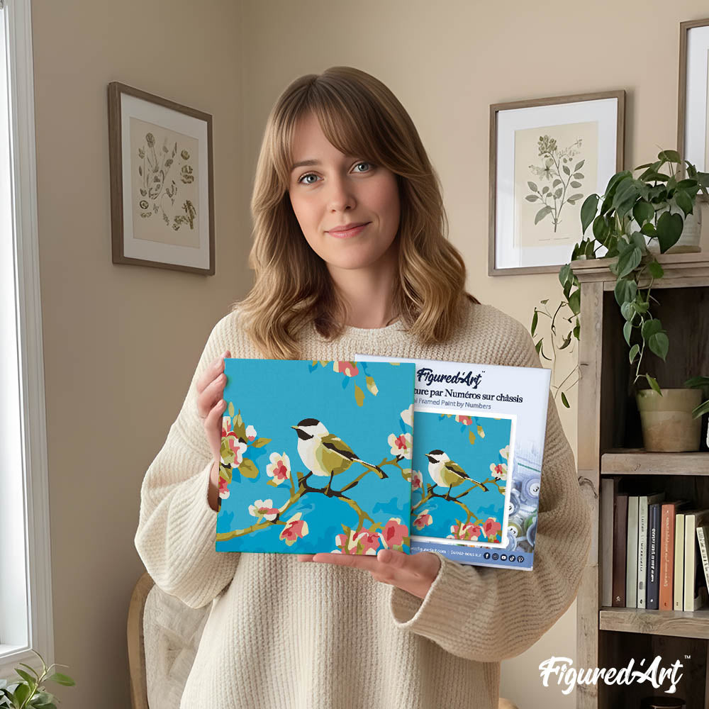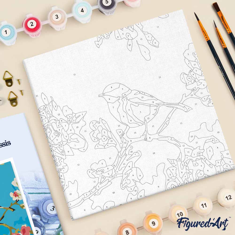 Mini Kit da Dipingere con i Numeri 20x20cm con cornice Sul ramo fiorito