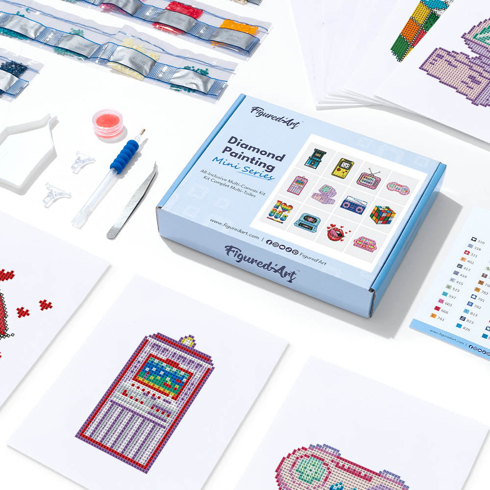 Questi mini kit di diamond painting sono pensati per tutti i livelli di abilità, permettendo a chiunque di godere dell'arte di dipingere con i diamanti. Questo kit contiene una serie di piccole tele con immagini diverse, permettendoti di rilassarti realizzando progetti veloci.