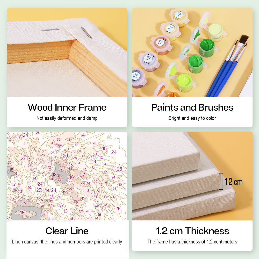 Questo kit di Dipingere con i numeri contiene tutto il materiale necessario per creare la tua opera d'arte: