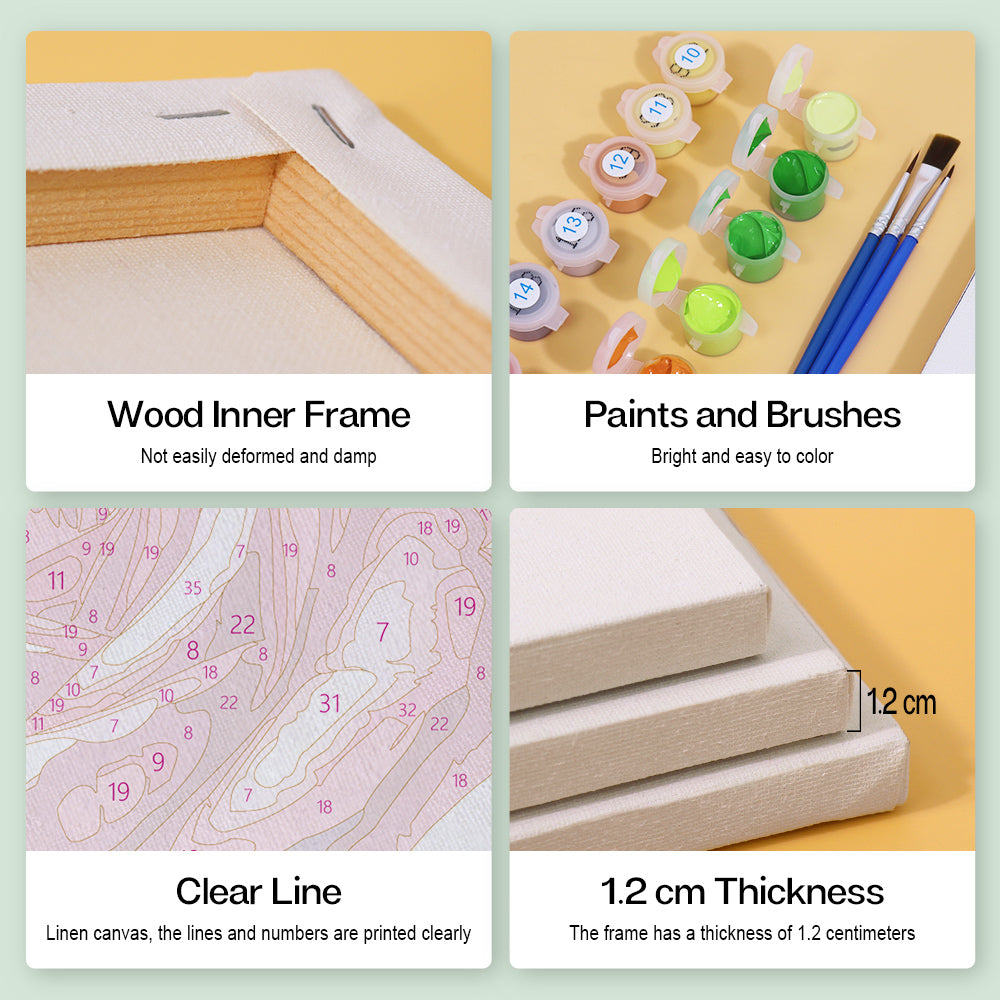 Questo kit di Dipingere con i numeri contiene tutto il materiale necessario per creare la tua opera d'arte: