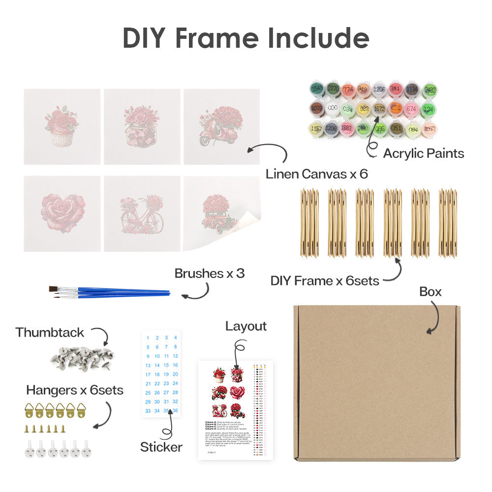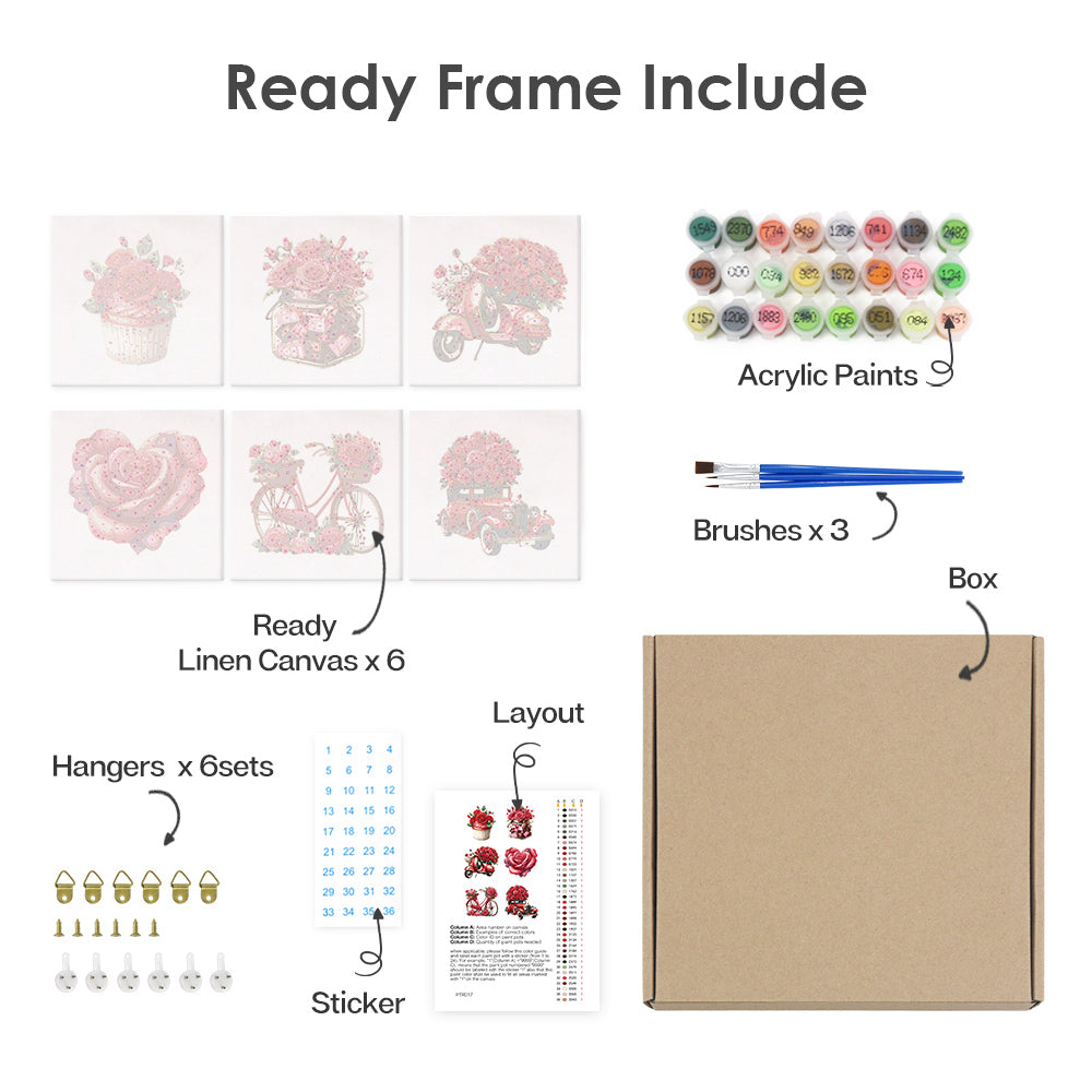 Mini Dipingere con i numeri 15x15cm (6 pezzi) - Serie Rosa Rossa San Valentino 1