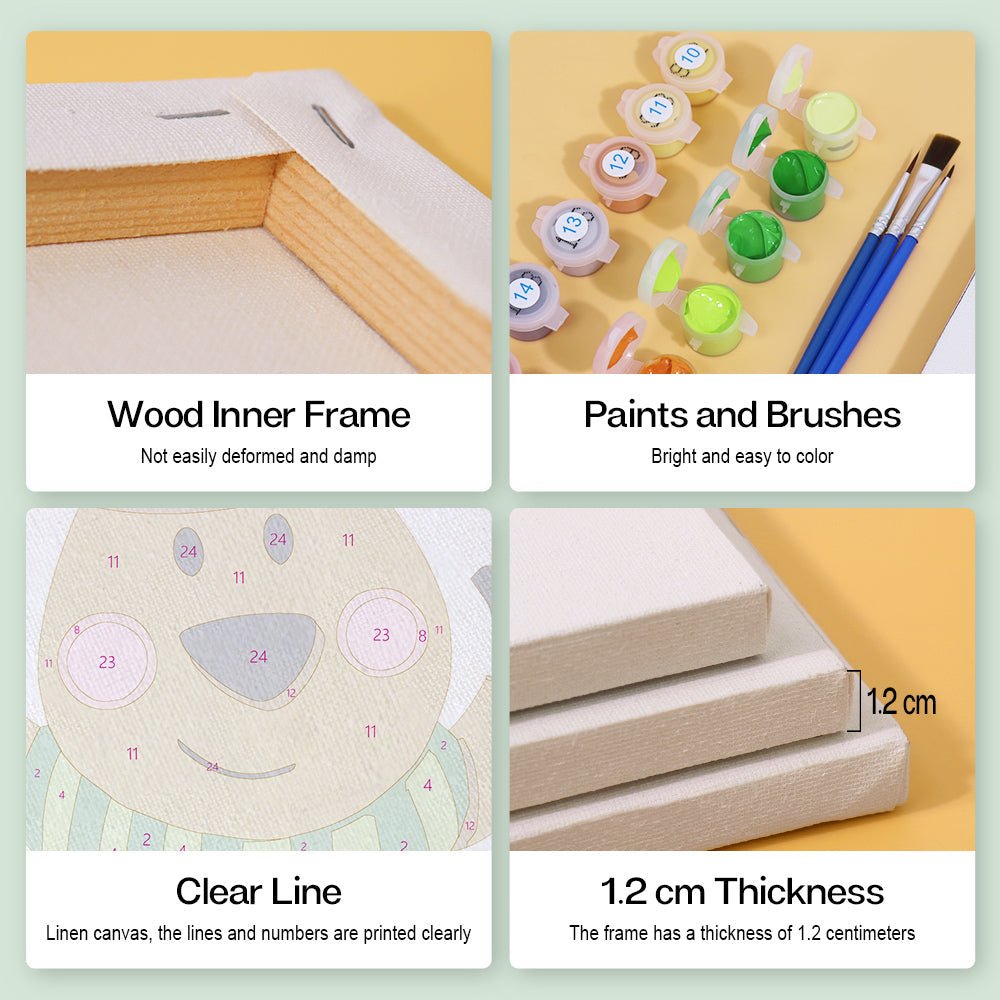 Questo kit di Dipingere con i numeri contiene tutto il materiale necessario per creare la tua opera: