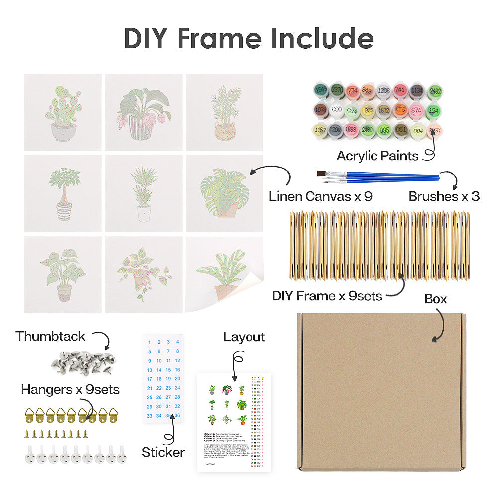 Mini Dipingere con i numeri 15x15cm (9 pezzi) - Arte Vegetale Moderna