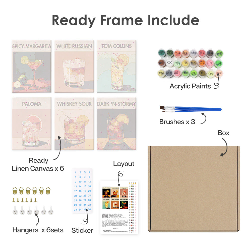 Questo kit di Dipingere con i numeri contiene tutto il materiale necessario per creare la tua opera d'arte: