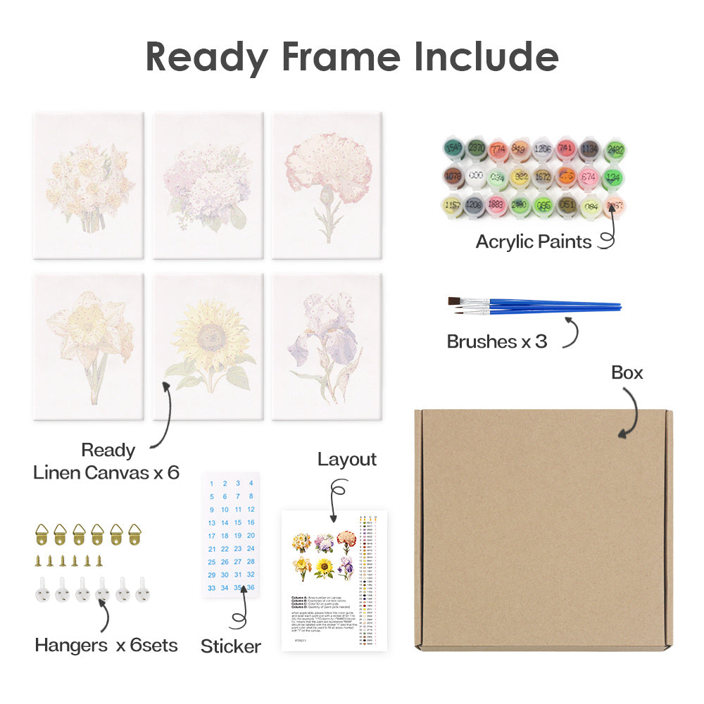 Mini Set Dipingere con i numeri 15x20cm (6 pezzi) - Floreale