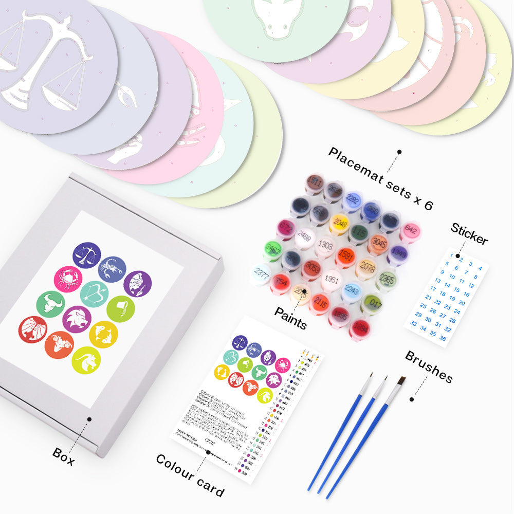 Set di 12 Tovagliette da Dipingere con i numeri (20cm diametro) - Serie Segni Zodiacali 2