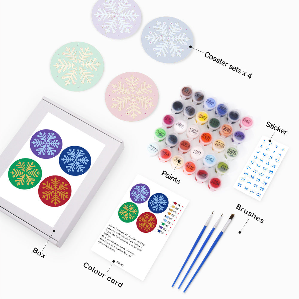 Dipingere con i numeri Sottobicchieri 15cm (4 pezzi) - Fiocco di Neve