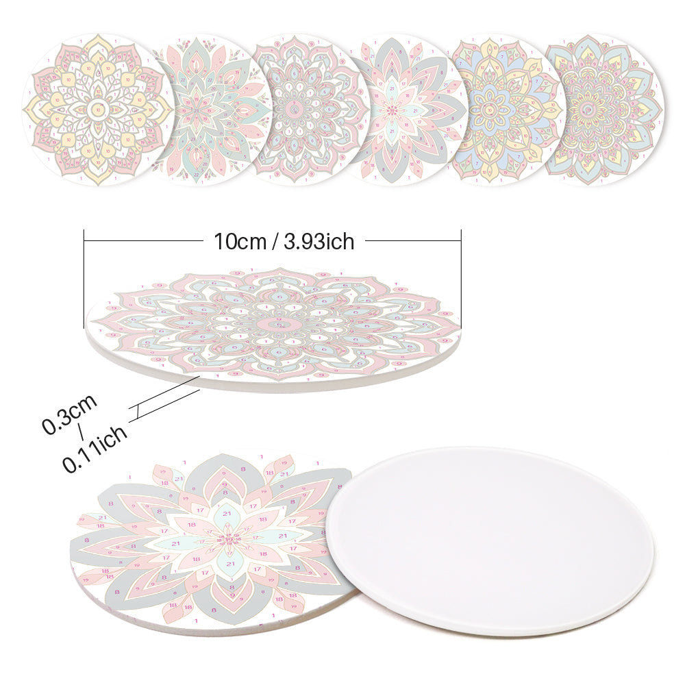 Dipingere con i numeri Sottobicchieri 15cm (6 pezzi) - Mandala Colorato