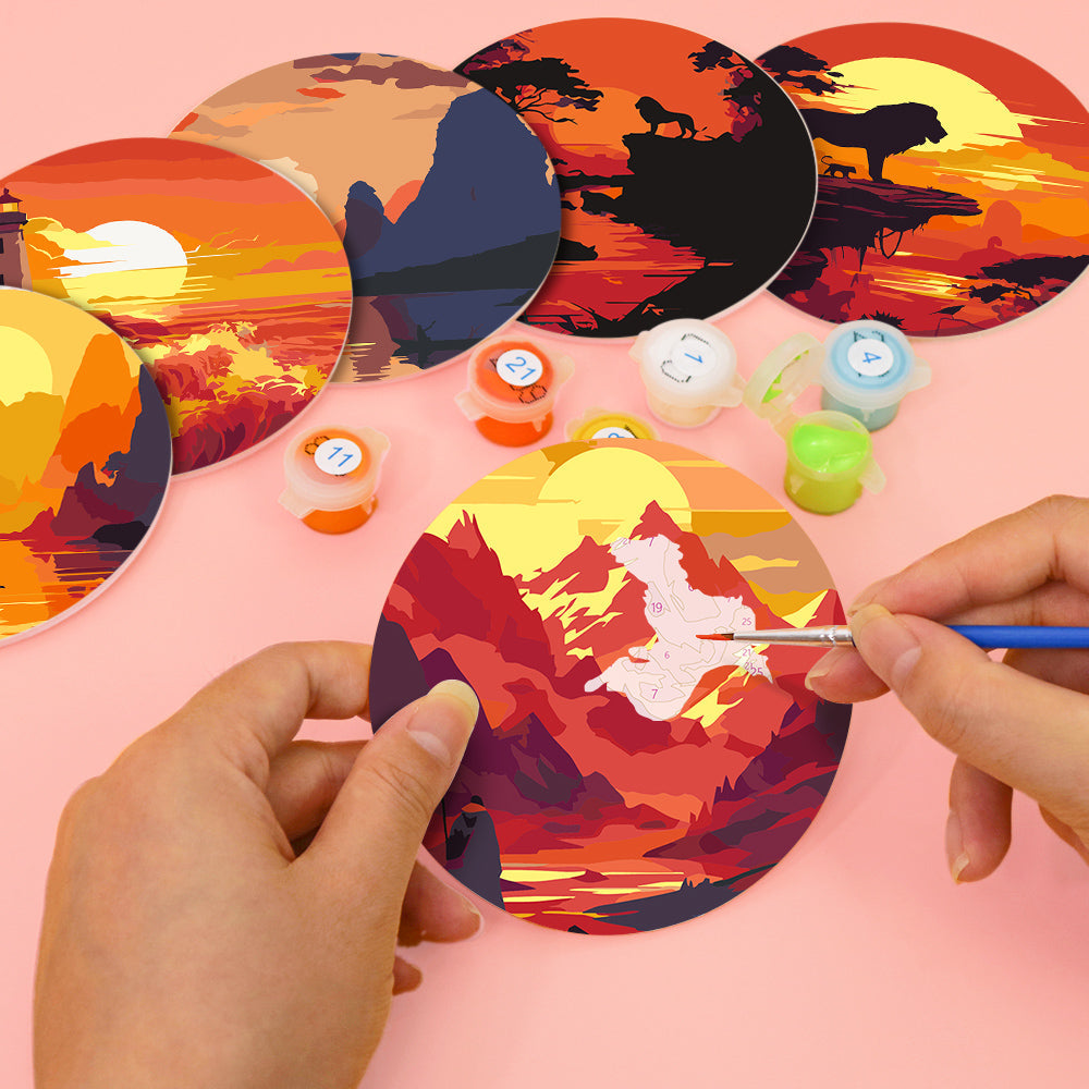 Set di 6 Sottobicchieri da Dipingere con i numeri (15cm diametro) - Tramonti