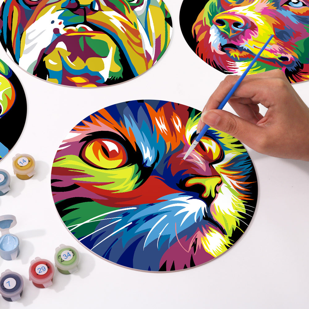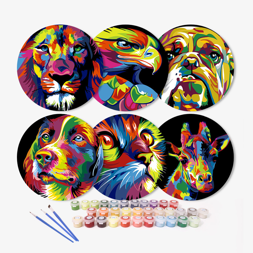 Set di 6 Tovagliette da Dipingere con i numeri (20cm diametro) - Animal Pop Art
