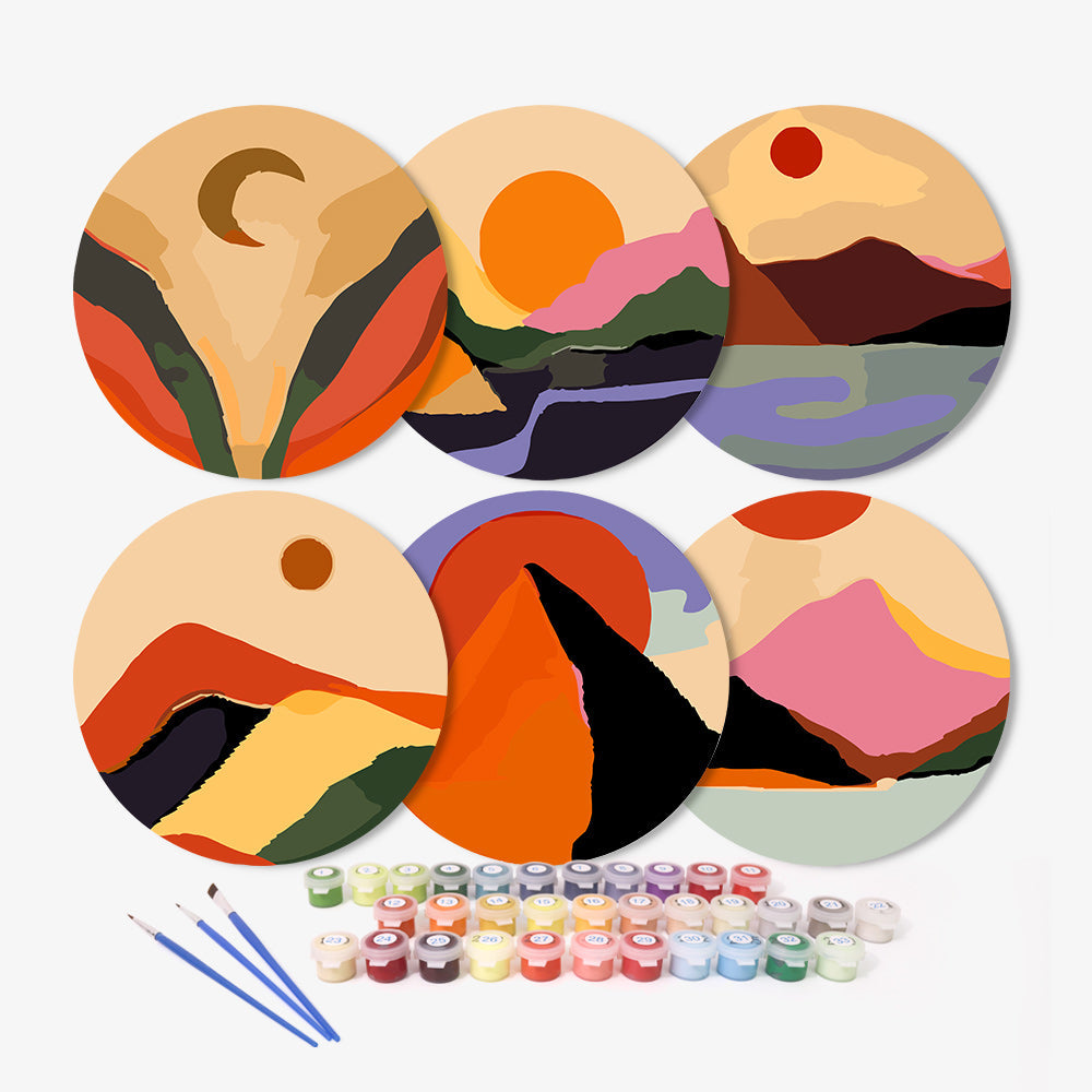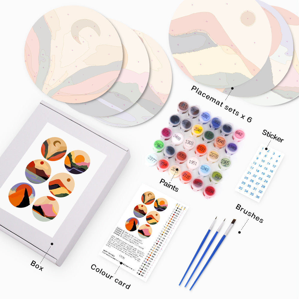 Set di 6 Tovagliette da Dipingere con i numeri (20cm diametro) - Montagna Astratta Moderna
