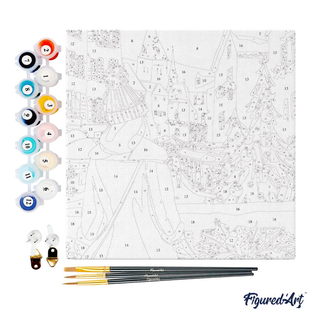 Mini Kit da Dipingere con i Numeri 20x20cm con cornice - Ragazza al mercatino di Natale