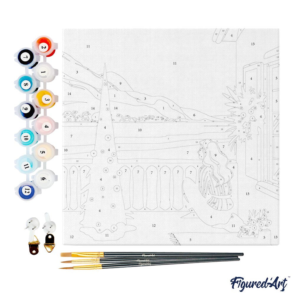 Mini Kit da Dipingere con i Numeri 20x20cm con cornice - Ragazza e lago invernale