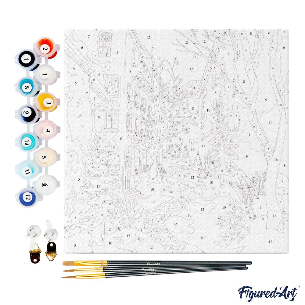 Mini Kit da Dipingere con i Numeri con cornice - Villaggio innevato