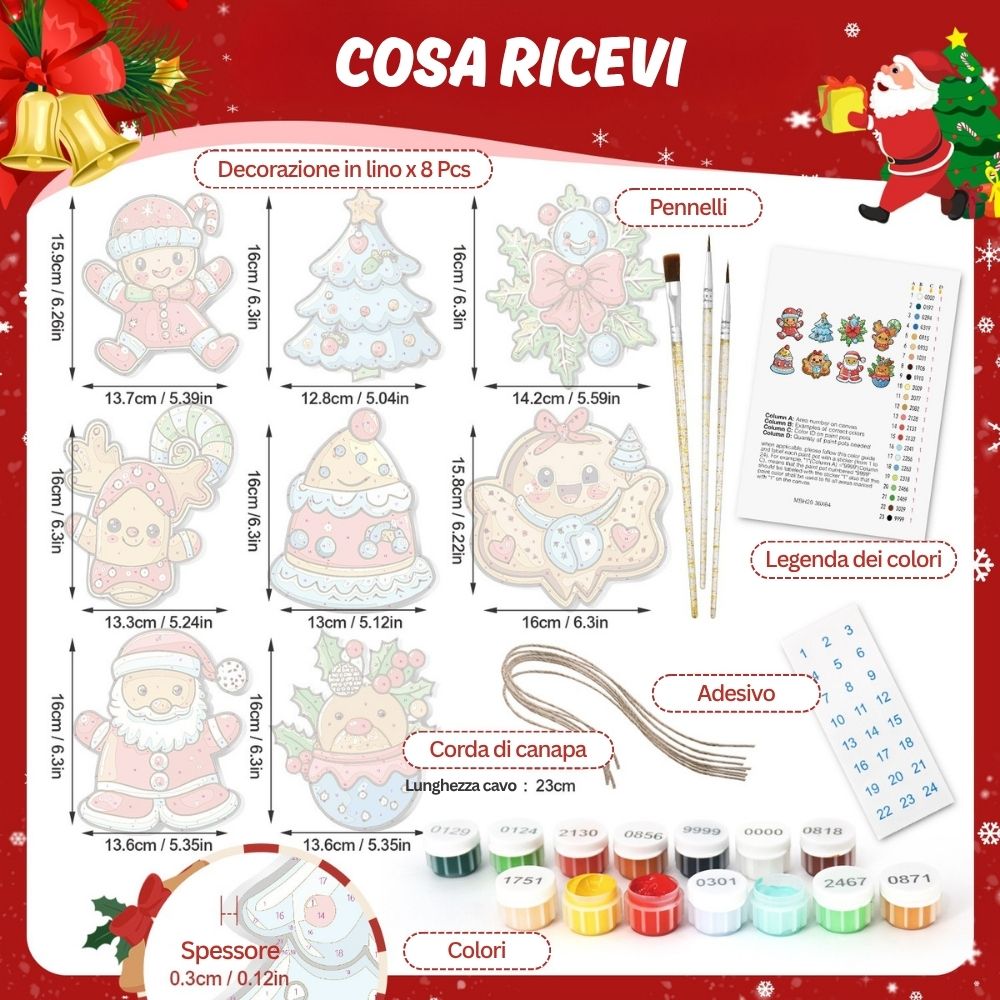 Decorazioni Natalizie da Dipingere con i Numeri - Kit Parata di Biscotti di Babbo Natale