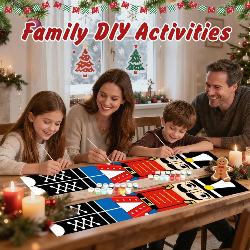 Porta la magia del Natale a casa tua con queste decorazioni natalizie vivaci e classiche! Il kit per Dipingere con i Numeri Decorazioni per Porte - Notte dello Schiaccianoci è progettato per riempire la tua casa di calore e creatività festiva. Ognuno di questi kit per pittura include due banner splendidamente decorati (20×120 cm), perfetti per abbellire ingressi, porte, pareti, camini o finestre. Ideali sia per ambienti interni che esterni, queste decorazioni di Natale possono essere usate come ghirlande o festoni, aggiungendo immediatamente fascino e allegria alla tua casa, ufficio o come sfondo per foto natalizie.