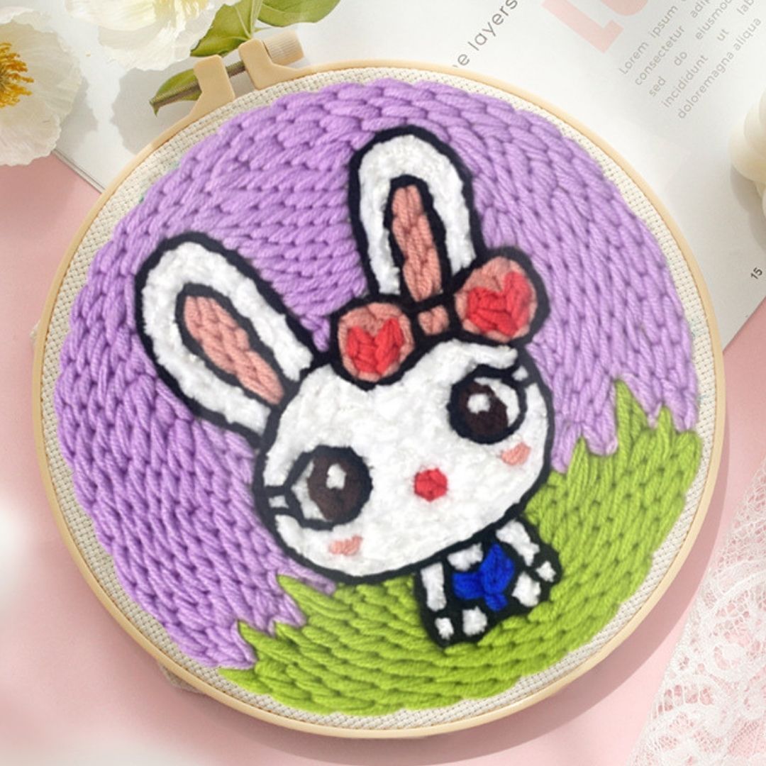 Modello: Punch Needle Kit Coniglio con fiocco rosso
