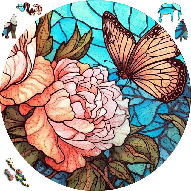 Modello: Puzzle 2D in legno - Farfalla e Ortensie