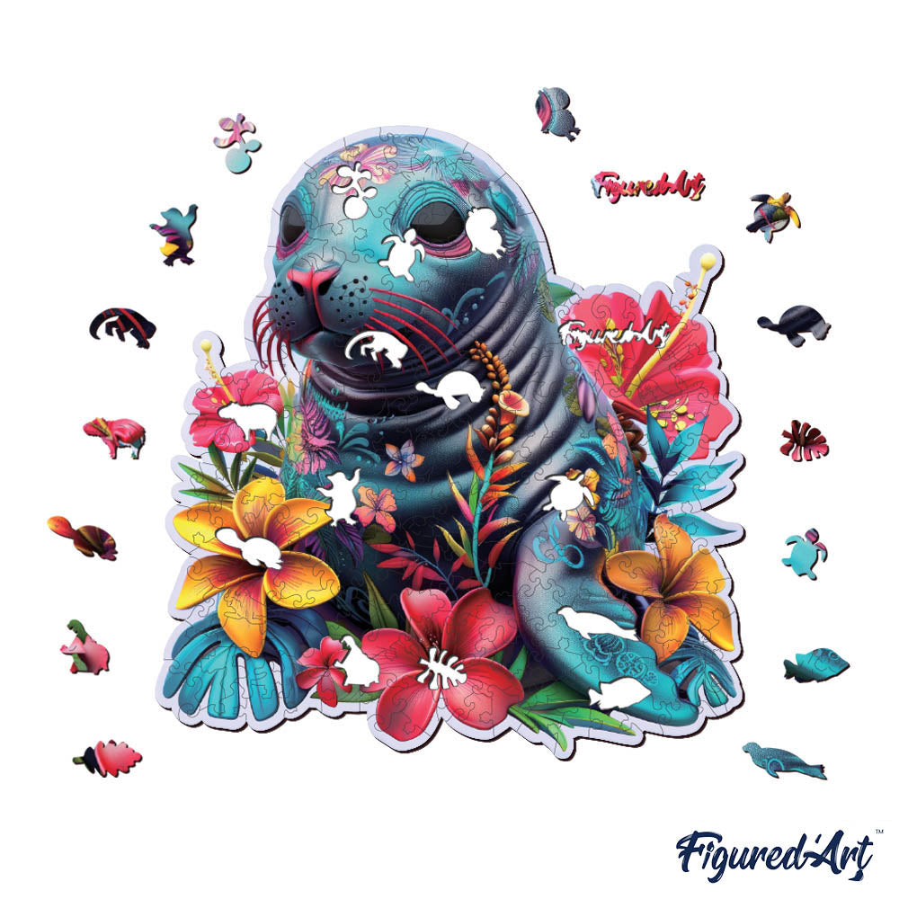 Modello: Puzzle in Legno Adulti - Foca e Fiori