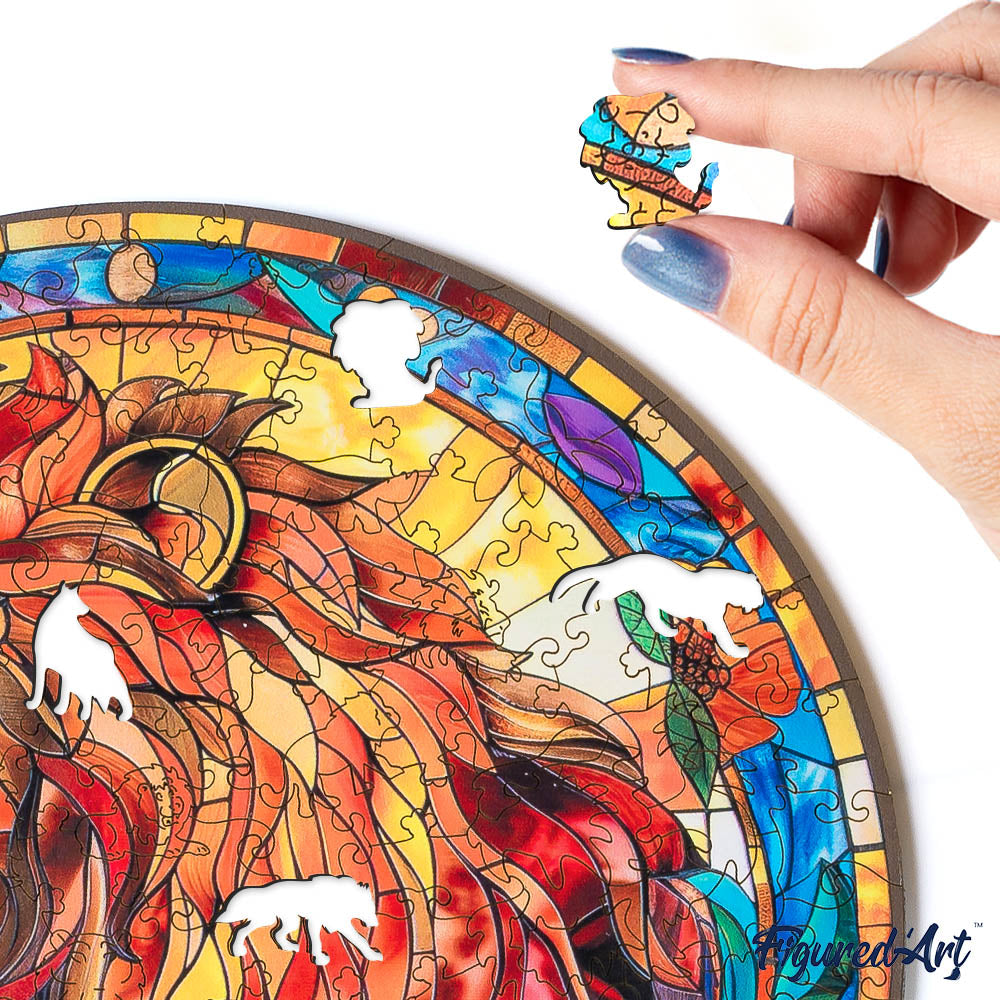 Modello: Puzzle in Legno Adulti - Vetrata con Leone