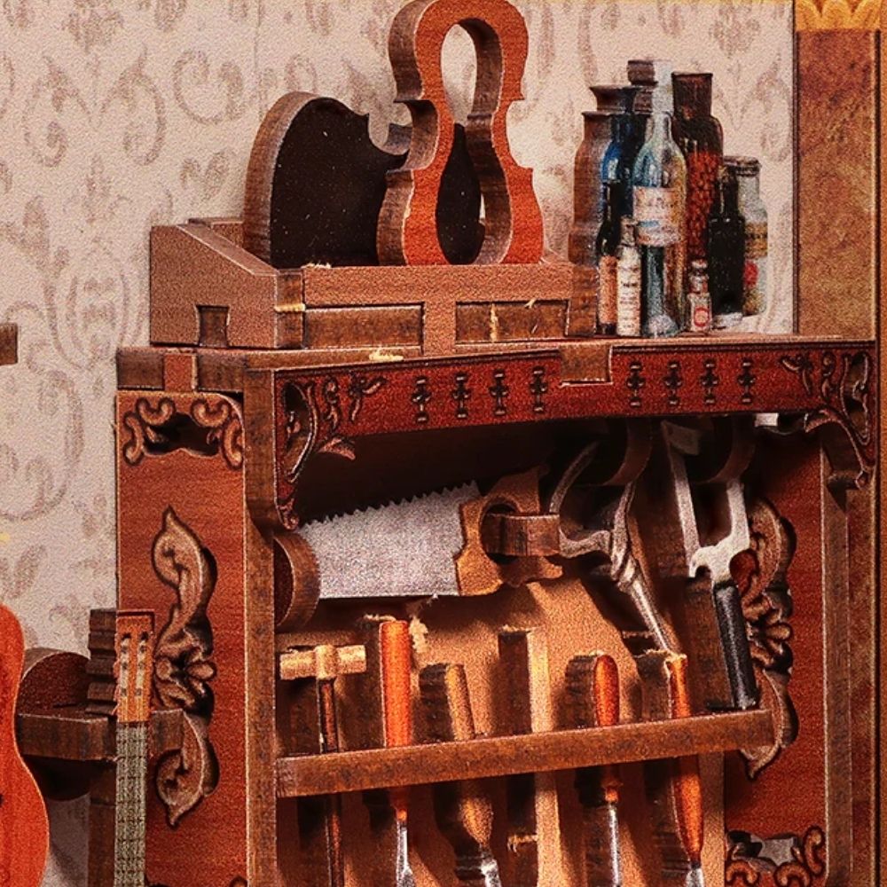 Le Corde di Bach cattura l'eleganza senza tempo di un laboratorio musicale europeo in miniatura. Ispirato ai borghi antichi, dove melodie barocche scorrono tra vicoli silenziosi, questo piccolo laboratorio dà vita a quell'atmosfera raffinata. All'interno troverai strumenti in miniatura, spartiti antichi e dettagli che evocano l'arte classica. Una scena ricca di fascino, dove musica e tradizione si incontrano.