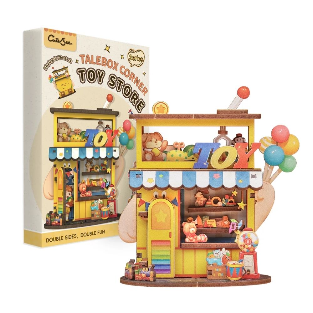 Benvenuto nel Toy Store, una scena in miniatura piena di divertimento e risate. Piccoli giocattoli, esposizioni colorate e dettagli simpatici fanno sembrare questa casa delle bambole un cartone animato diventato realtà. Una miniatura allegra e frizzante che porta energia e personalità alla tua libreria.