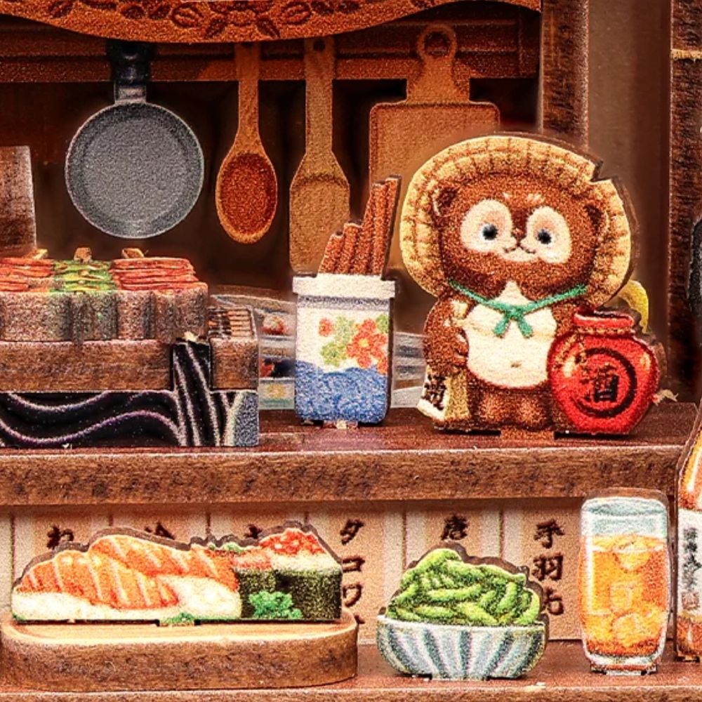 Il Vecchio Quartiere di Choshi cattura il calore di un tipico quartiere giapponese di notte. Lanterne di carta ondeggiano diffondendo una luce calda su spiedini, bottiglie di sake e minuscole tazze. Una scena che evoca aromi, risate e i piaceri semplici della vita quotidiana, portati direttamente nella tua libreria.