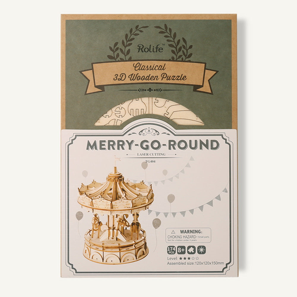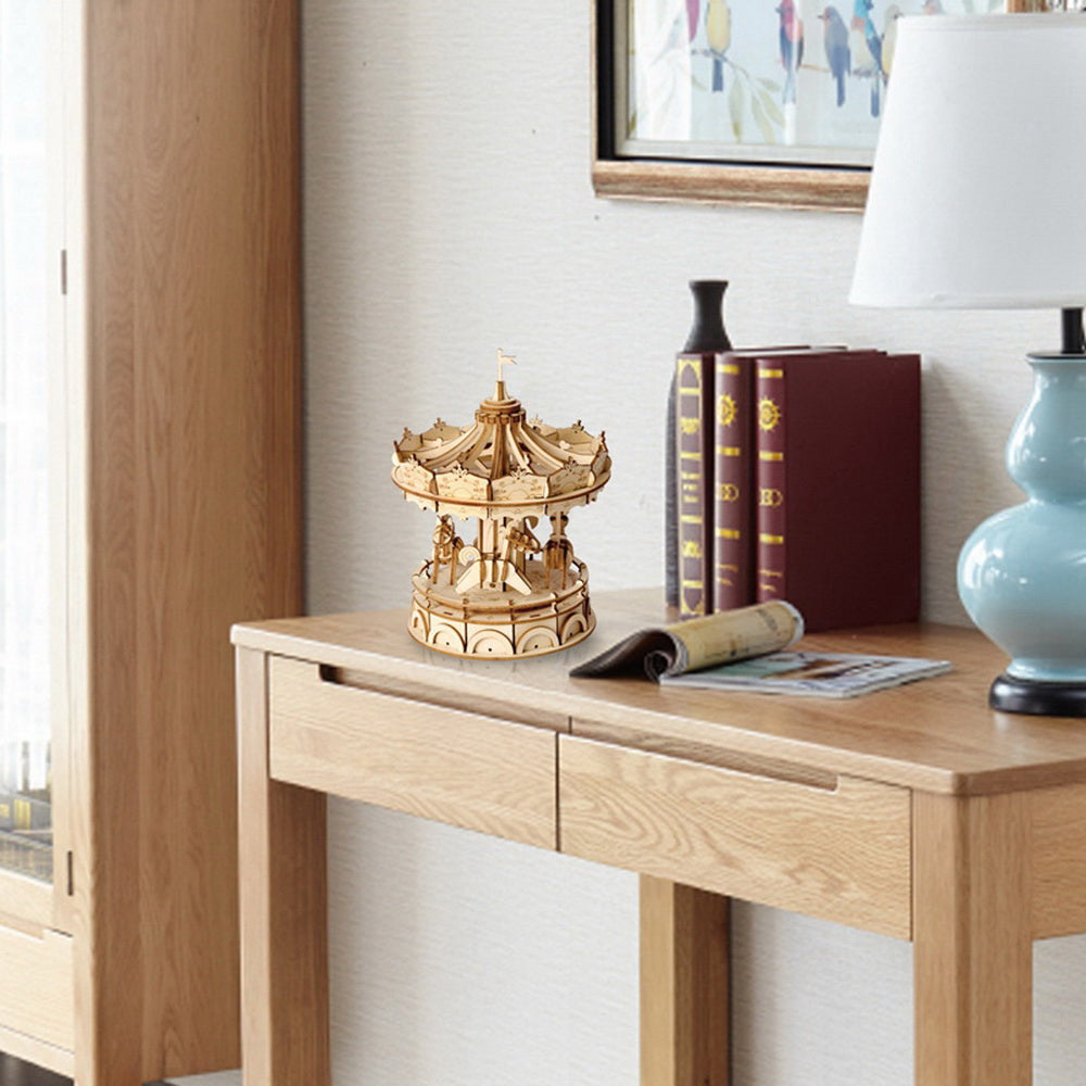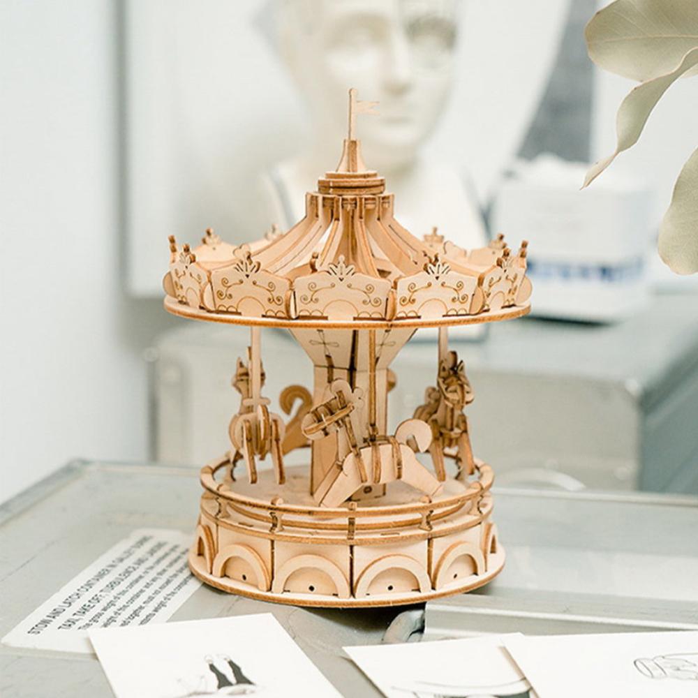 Questo puzzle 3D in legno è un modello in scala ridotta di una giostra, perfetto come decorazione da tavolo. Assembla facilmente in circa 1,5 ore e ridai vita a una vecchia giostra grazie a questo modello originale.